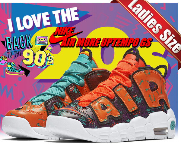 お得な割引クーポン発行中!!【あす楽 対応!!】【送料無料 ナイキ モアアップテンポ GS】NIKE AIR MORE UPTEMPO(GS) total orange/black-hyper jade【What The 90s スニーカー モアテン レディース ウィメンズ キッズ】