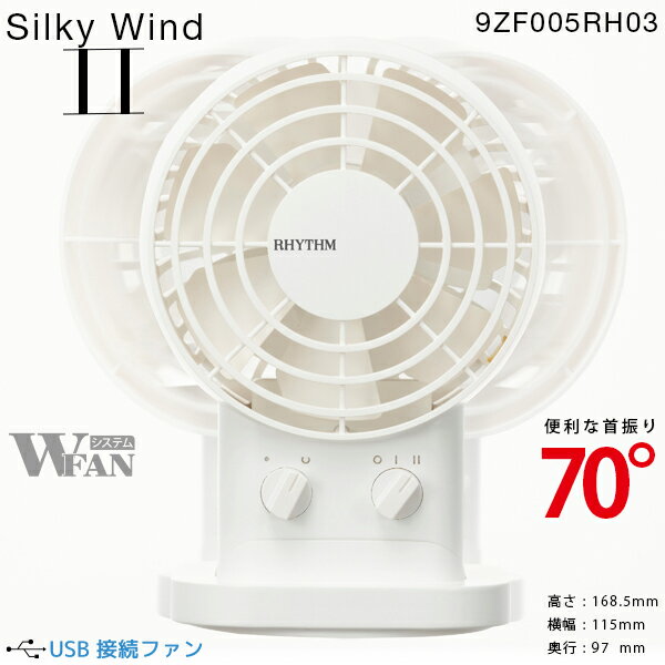 【USBファン 扇風機 省エネ】 9ZF005RH03 シルキー ウィンド Silky Wind 2 [USB接続ファン] リズム時計 サーキュレーター 空気を循環 冷暖房の効率UP ホワイト色 【プレゼント ギフト 贈り物 ラッピング】【お取り寄せ】