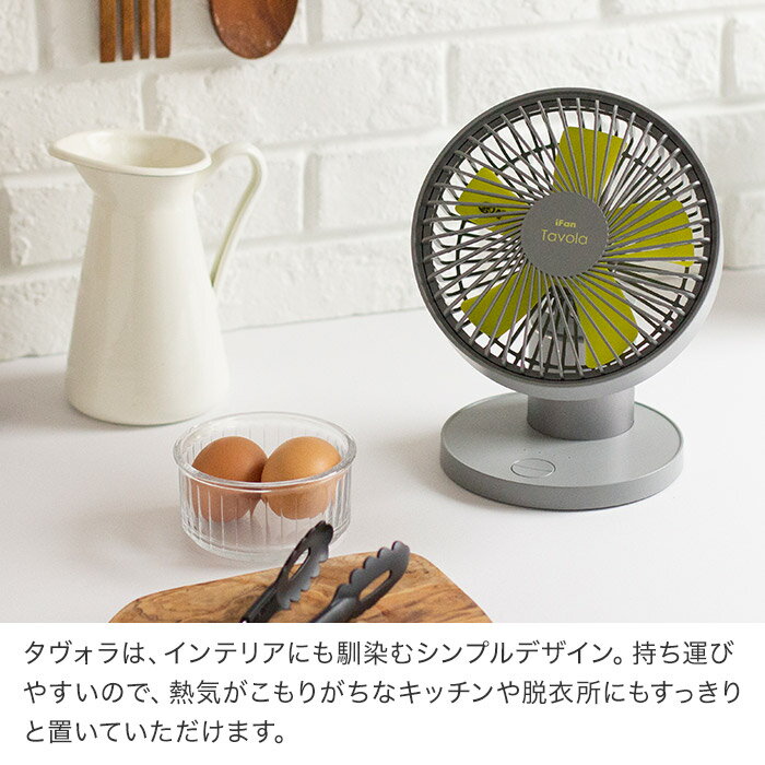 ミニ扇風機 充電式 デスクファン アイファン タヴォラ ミニファン ホワイト ネイビー グレー 扇風機 首振り 自動 コードレス デスク 卓上 オフィス 小型 USB おしゃれ デザイン 熱中症予防