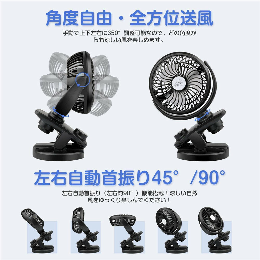 【2020年強化版】QZT 扇風機 自動首振り 無段階風量調節 クリップ 卓上 50時間連続使用 usb充電式 静音 6畳 強風 小型 USBファン パワフル送風 アロマ/虫除け機能 専用スポンジ付属